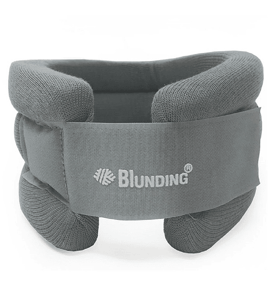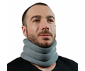 Soporte cervical de corte anatómico en poliuretano de alta densidad, recubierto con tejido tubular y ajustable con cierre de contacto.